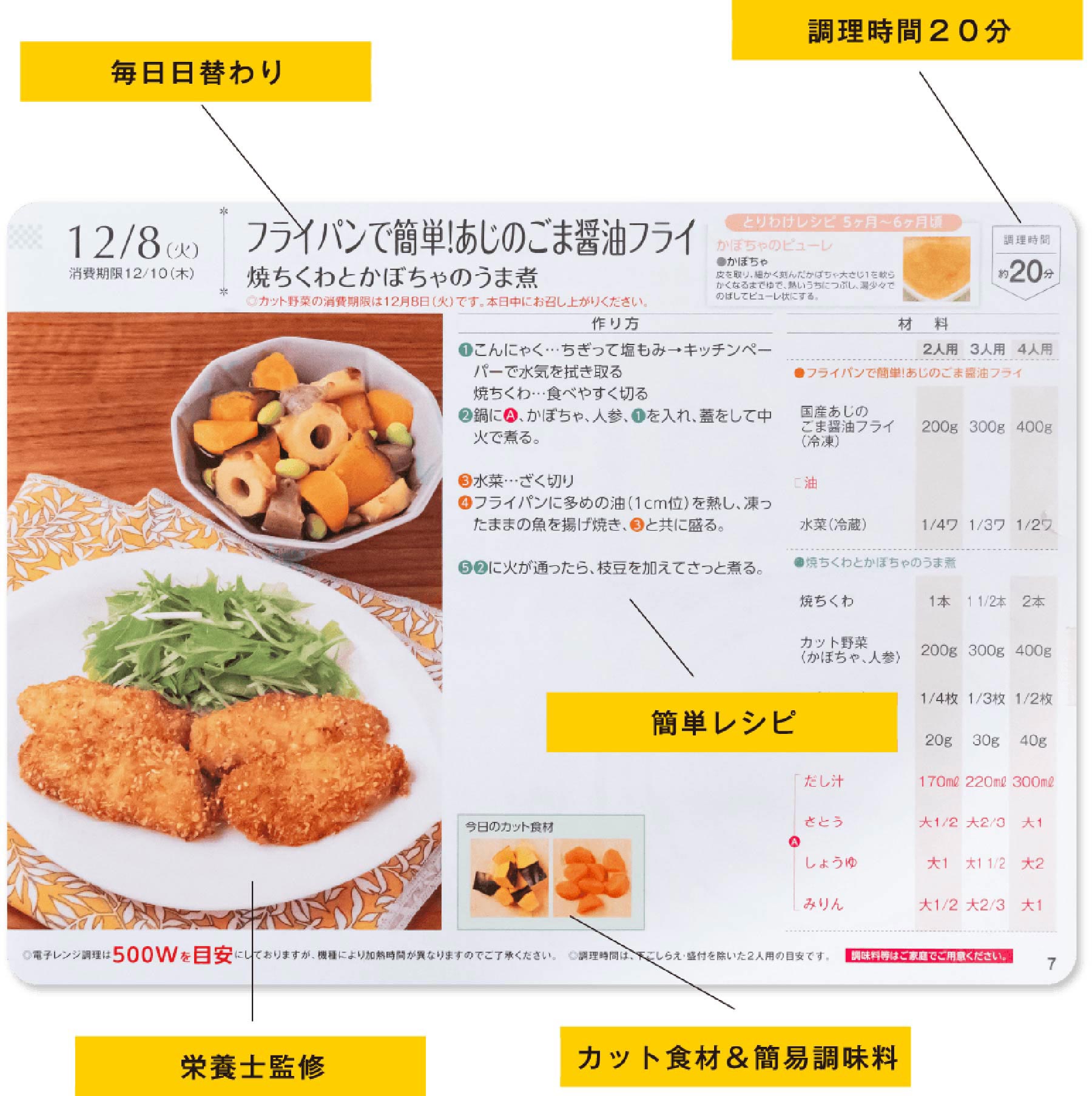 お届けのメニューブック「すまいるごはん」でレシピを見ながら簡単クッキング。初心者でも安心の簡単調理、15〜20分で完成の時短レシピです。